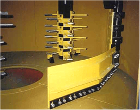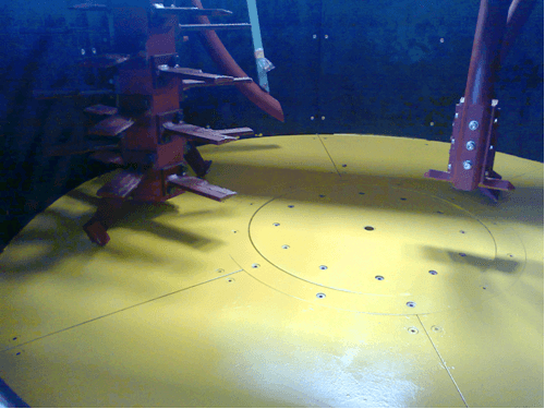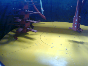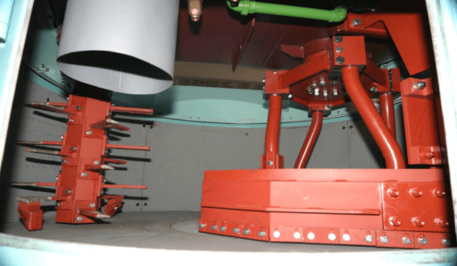 Into the pan, the sidewall scraper continuously conveys the material from the periphery to the centre, eliminating dead spaces and keeping perfectly clean the sidewall of the pan. Bottom scrapers, clean the pan bottom (fixed on the turbines and/or the blades).